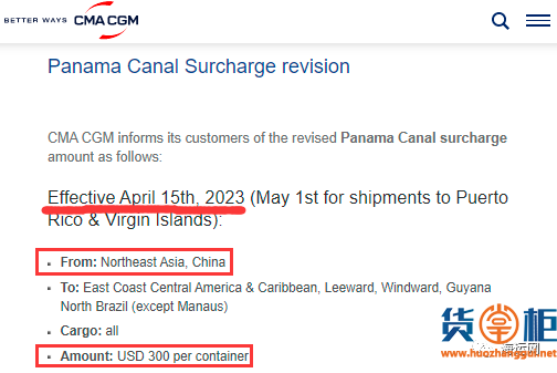最后提醒大家,达飞日前修订了巴拿马运河附加费,4月15日生效,每个集装箱300美元。具体如下: