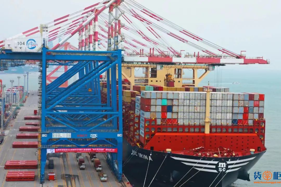 4月8日下午,我国自主研制的全球最大的超大型集装箱船“地中海伊琳娜”(MSC IRINA)轮靠泊厦门港嵩屿集装箱码头,再次刷新挂靠厦门港超大型船舶的历史纪录。