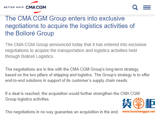 55亿美元!达飞要约收购Bolloré Logistics