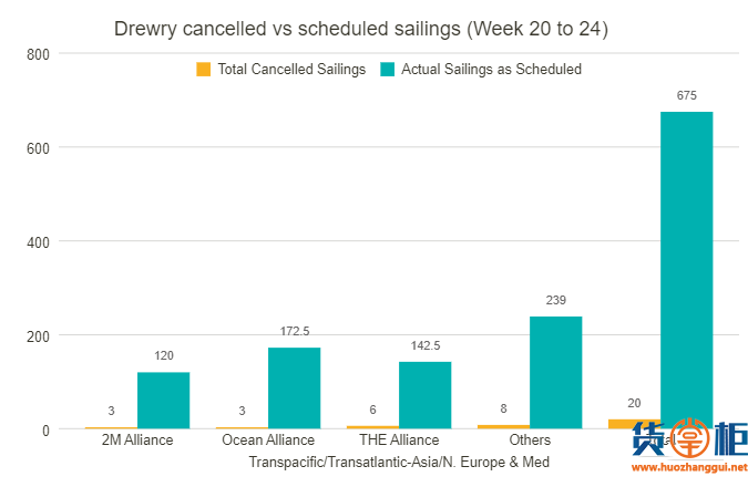 此前,2M联盟宣布取消多个TP6和TP2航次。由于连续航次被取消,某些航线的航班集中取消导致服务暂停。比如,此前2M联盟6条亚欧航线之一的AE1/Shogun环线永久停航。看来马士基仍在不断取消航次,努力实现供需匹配。